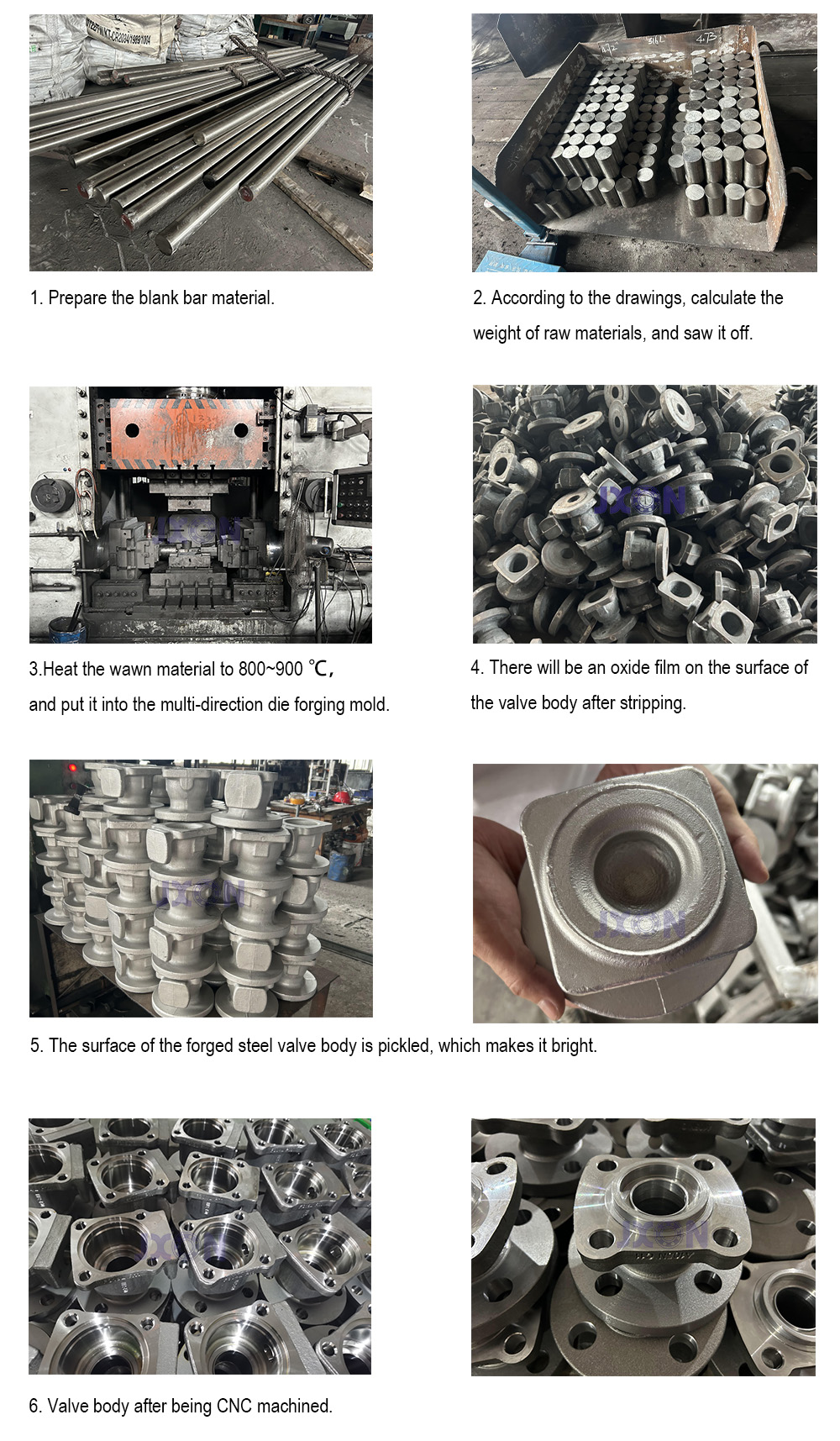 JXON focuses on providing higher quanlity ball valves, while reducing procustion cost. Forged steel ball valves are our advantageous products. The reason for the high production cost of forged steel ball valves is that a forged steel ball valve body requires more production time and has more spare material than cast steel ball valves. Typically, one CNC machine can only produce one valve body at a time, resulting in a very low processing efficiency and long production times. Due to its long production time, JXON has developed a special equipment for forging valve drilling. This special equipment can produce nine valve bodies simultaneously with a large drilling force and high efficiency, greatly reducing the processing time for forging valve bodies. Regarding the issue of excess material, we utilize multi-directional closed die forging. As is known, this method produce no flash and waste few spare material, resulting in a valve body that is nearly finished. It only requires a minor CNC machining. Therefore, we can greatly reduce the time and raw material costs, which gives us the advantages in terms of pricing and delivery time.