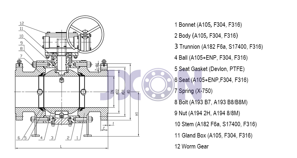 The JXON Forged steel trunnion mounted flanged ball valve is widely used in various applications, inclusing chemical plants, power plants, and oil and gas pipelines. It has a trunnion mounted structure, which allows the flanged ball valve to operate easily with a large diameter.